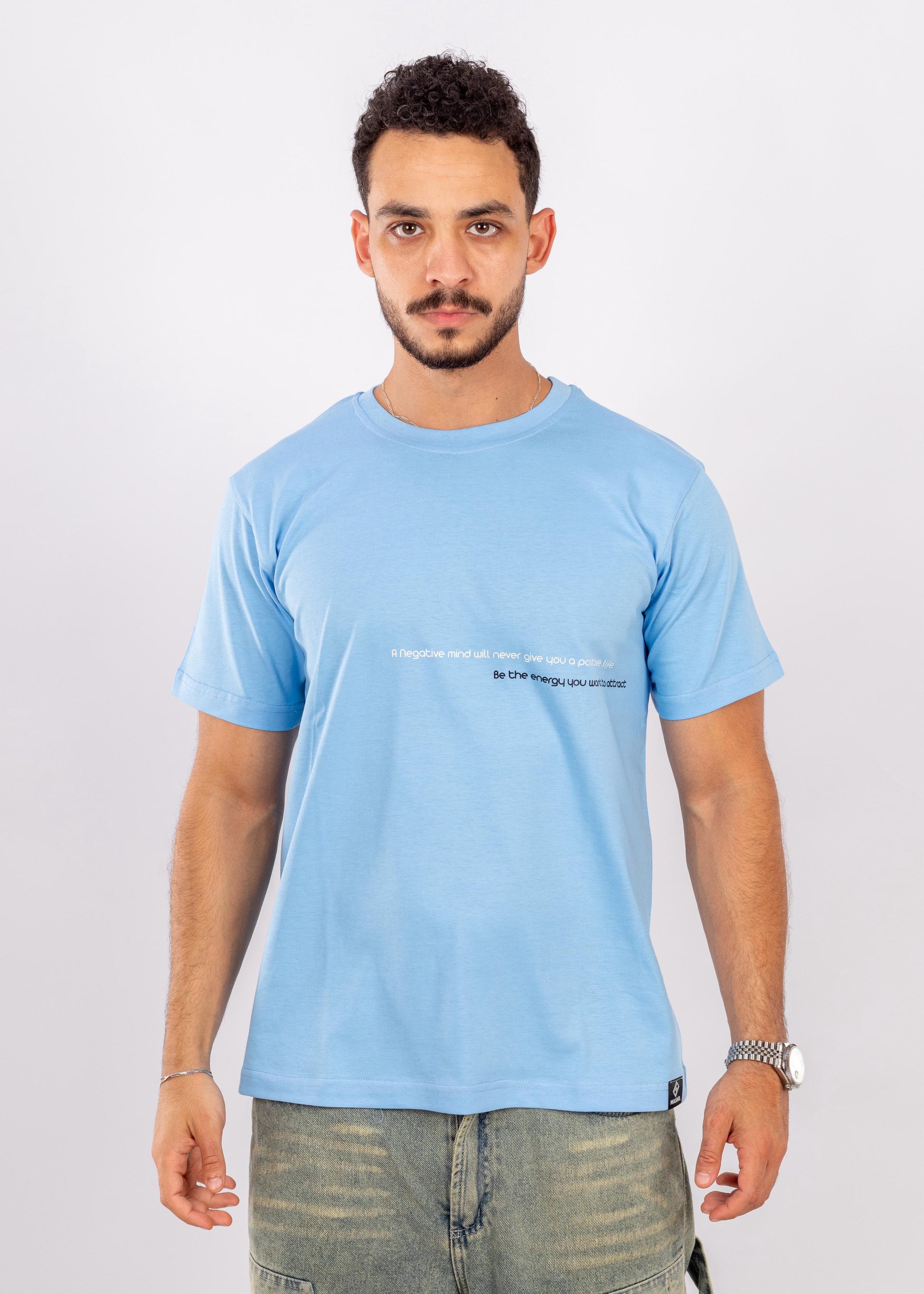 This sky-blue tee carries powerful words on both sides – front: 'A negative mind will never give you a positive life. Be the energy you want to attract.' Back: 'Dream big, move smart, and don’t stop.' Designed to keep you inspired wherever you go.