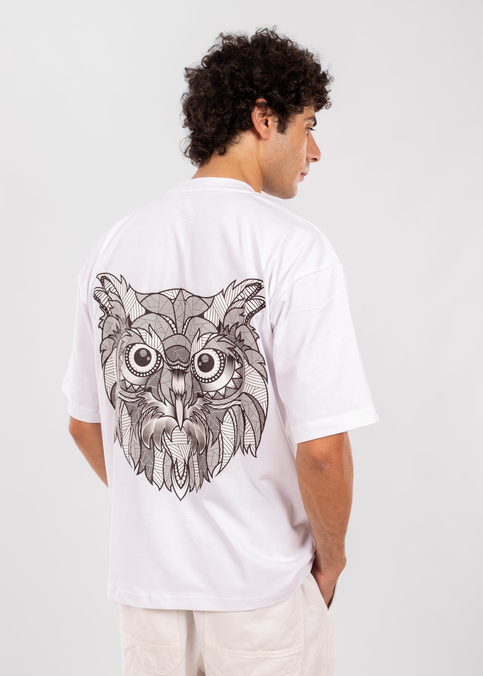 "Wise Vision" – White Owl Graphic Over Size T-Shirt